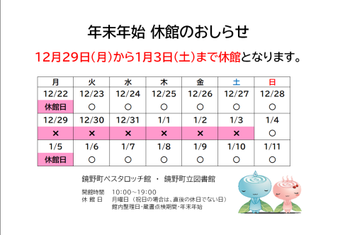 【案内】12月29日(月)~1月3日(土)年末年始 休館のお知らせ