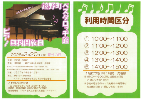 【行事】3月20日(金・祝)ペスタロッチ館 ピアノ無料開放